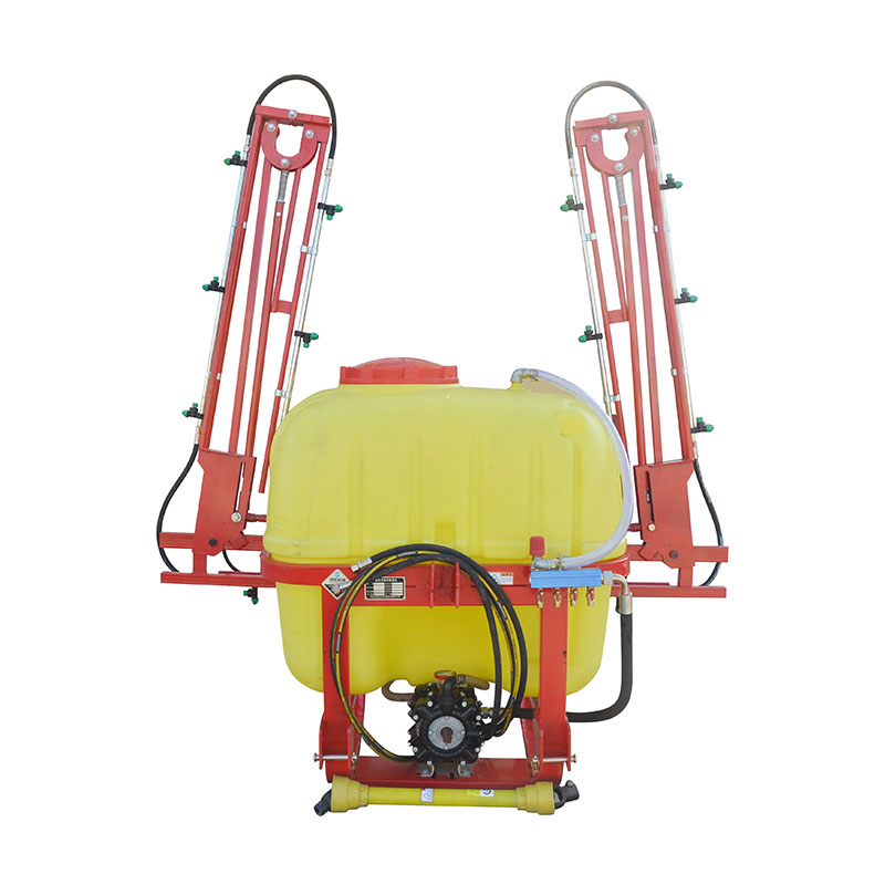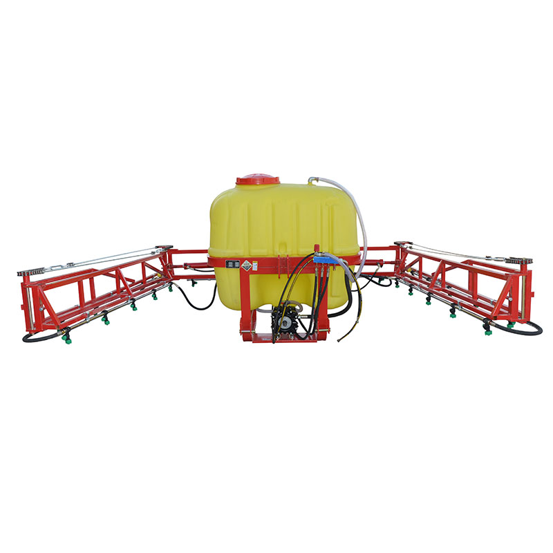 Penyemprotan tractor boom hidrolik hibatan kerja karo traktor saka telung penundaan. Shaft transmisi disambungake menyang traktor lan pompa tekanan panyemparan. Tekan pompa pumping Cairan menyang distributor banyu. Banjur cairan diwarisake menyang pipa baja stainless liwat pipa karet, nyemprotake plastik kanggo nyemprot. Nozzle bisa ditutup kanthi kapisah yen perlu.
