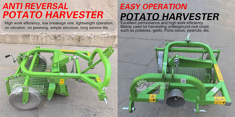 Pemanen kentang sing dipasang traktor sing duwe efisiensi dhuwur, kerusakan potong minimal, pemisahan lemah sing cepet, lan urip layanan sing dawa.